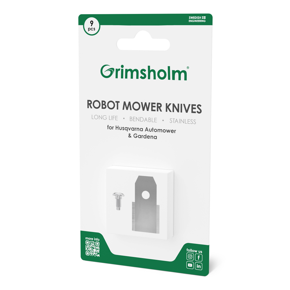 Sørg for at holde din robotplæneklipper skarp og effektiv med originale Grimsholm reservedele – ideelle til både private haver og større græsarealer.